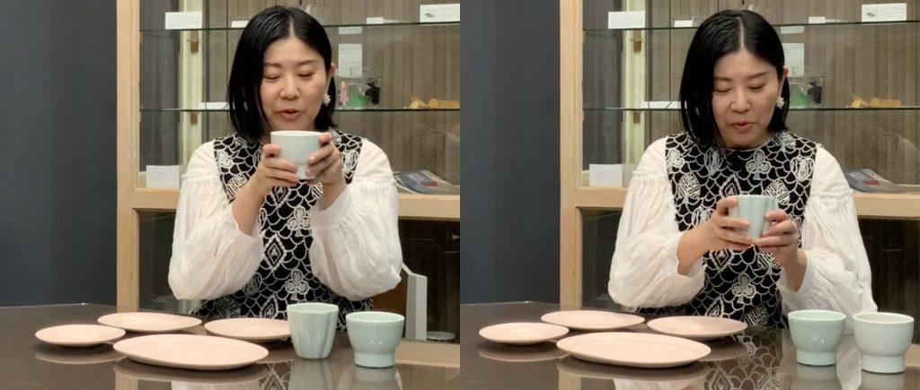 「これは鉢として大介さんが作られているもの。私は惣菜やデザートを入れたり、それだけではなくて、コーヒーや飲み物を入れても。本当に日々大活躍。私はこの台座の雰囲気がすごく好きで、この台座が付いているものに以前から惹かれてきました。