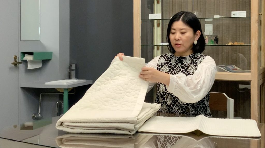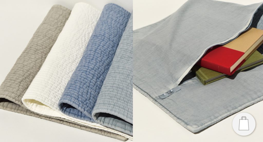 もともとこれを扱っているKitは、このイブルをいち早く扱い始めたお店。京都にあるセレクトショップなんですけど、店主さんの審美眼がすごくて、Kitがオープンした時からずっとファンで通い続けています。Kitの店主さんが韓国に買い付けに行く時に付いていったことがあって、その時市場のイブル屋さんに行って。イブルはサイズも色も縫った柄も色々ありますから、大きなものは寝る時に掛けたり、敷き布団にもなりますし、小さいものは膝掛けにもなりますね。枕カバーはその中に入れるサイズの枕を探すのが大変なので、小物入れに使ってね、とみんなにおすすめしているんです」
